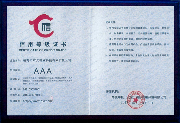| 凌海市農(nóng)光種業(yè)科技有限責(zé)任公司是由遼寧省種子管理局和凌海市人民政府批準(zhǔn),集科研、生產(chǎn)、試驗示范、經(jīng)營為一體的種子企業(yè)。 公司擁有種子繁育基地3萬畝,年產(chǎn)種子1200萬公斤左右。自成立以來在農(nóng)業(yè)部及遼寧省歷次花期檢驗中,所生產(chǎn)的種子質(zhì)量合格,擁有良好的儲備、晾曬和機械加工設(shè)備,為了提高種子質(zhì)量,2015年新購置種子脫粒機、清選機、烘干機以及電腦包裝機等整套加工設(shè)備,擁有經(jīng)省技術(shù)監(jiān)督局認(rèn)證的“標(biāo)準(zhǔn)化檢驗室”,投資20萬元購買人工氣候室、土壤測試儀、低溫低濕冷藏箱等各種檢驗設(shè)備。公司重視種子科研工作,現(xiàn)有科研育種實驗基地100畝,科研上以自主研發(fā)為主,同時與多家科研單位合作育種,每年繁、育、測交材料2000多份,現(xiàn)以推出五個組合參加錦州區(qū)域試種,其中“農(nóng)光3號、農(nóng)光4號”在錦州地區(qū)試驗中產(chǎn)量居首位。2006年公司買斷的連玉16玉米品種已通過5個省市的審認(rèn)定,具有適應(yīng)性廣、抗逆性強、產(chǎn)量高的特點,曾榮獲大連科技進步一等獎,深受廣大農(nóng)戶的歡迎。2008年公司新選育的農(nóng)光4000玉米品種在市種子管理站新品種大區(qū)試驗項目中。2012年公司買斷錦玉118品種權(quán),新品種的推廣與應(yīng)用為公司的發(fā)展提供了充足的動力...... |